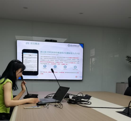 单芬霞同学和邓小璇同学从新苗项目的概述引入,首先介绍了新苗项目的选题可以参照毕业论文,浙江省时事热点以及历年立项题目等方式;其次,着重介绍了立项申报书的撰写,深入的分享了项目主要内容,项目背景、目的及意义,项目技术路线和组织管理,基础条件和保障措施,实施内容和任务分工五方面内容撰写上的注意点;最后两位同学介绍了申报的流程以及申报需要注意的时间节点。