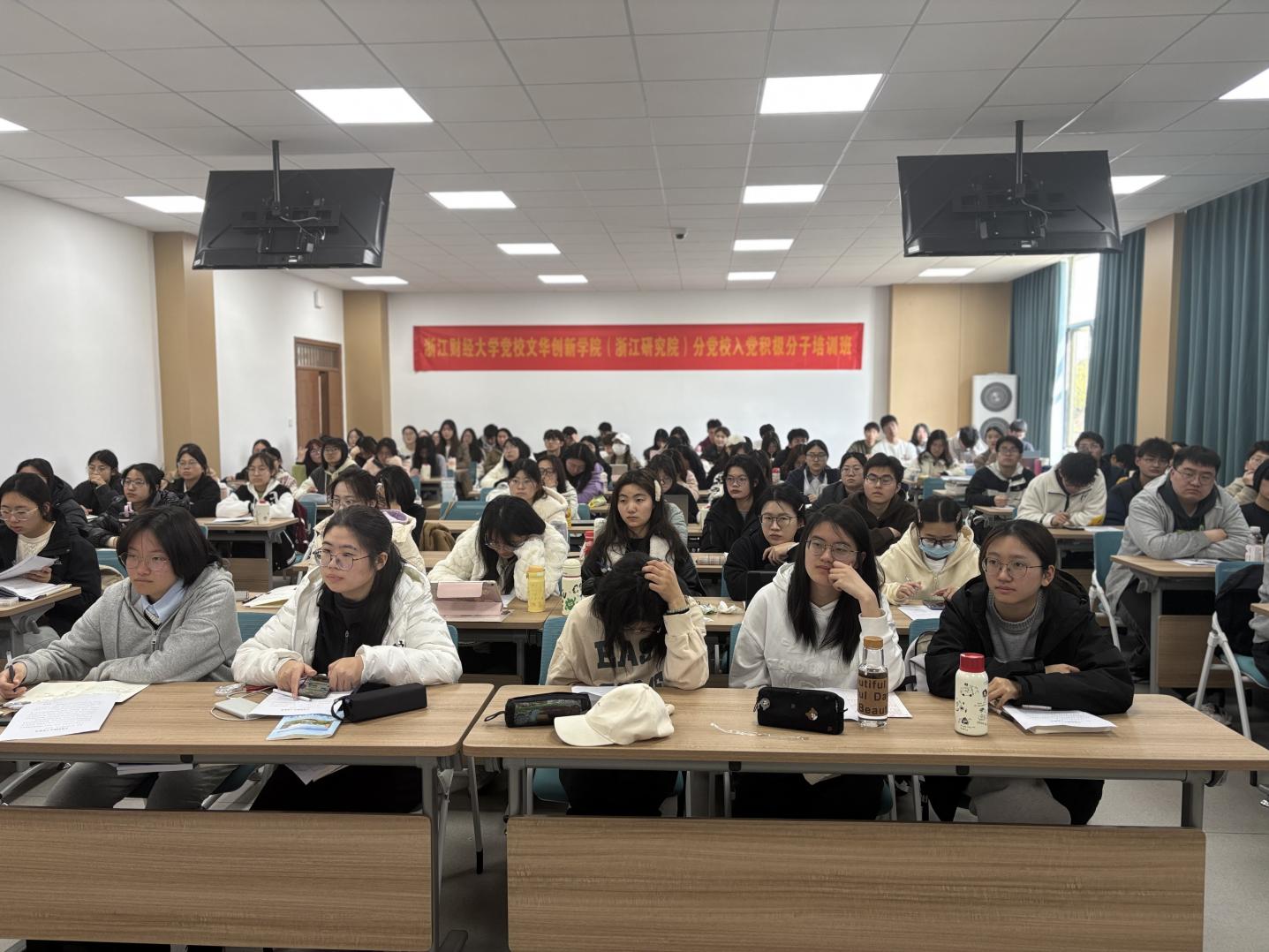 )党委于8号学院楼101教室举办分党校第二期学习班的理论授课。全体入党积极分子参加学习班。