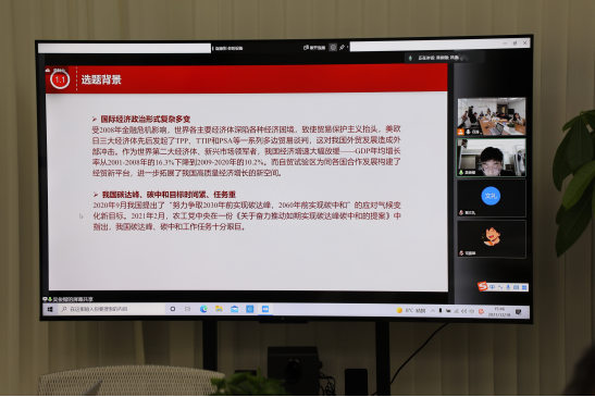 土地与发展研究院曾灿英老师分享了其在“省级尺度碳排放空间精细化制图”方面的科研成果;公共管理学院研一学生王静怡探索了如何使土地系统转型,以便应对气候变化;中国金融研究院的学生吕浩东专注研究绿色金融,阐述了ESG促进浙江省绿色金融发展的机制……老师们、同学们群策群力,纷纷为实现国家的“双碳”目标献计献策。在作者们汇报之后,童光辉老师、吴绍华老师等点评嘉宾就其选题、实证分析、研究结论等论文内容对汇报进行了全方位的点评,独到的观点赢得了在场师生热烈的掌声。