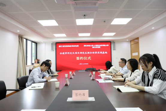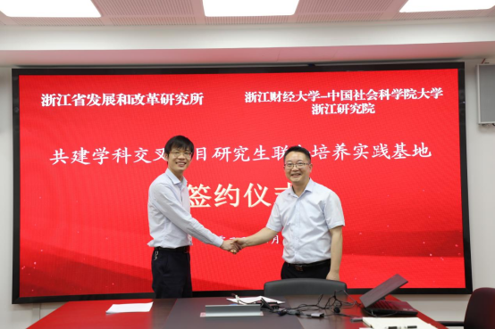 与浙江省发展和改革研究所举行了共建学科交叉项目研究生联合培养实践基地签约仪式,浙江省发展和改革研究所所长钱陈、副所长吴可人、中国p站