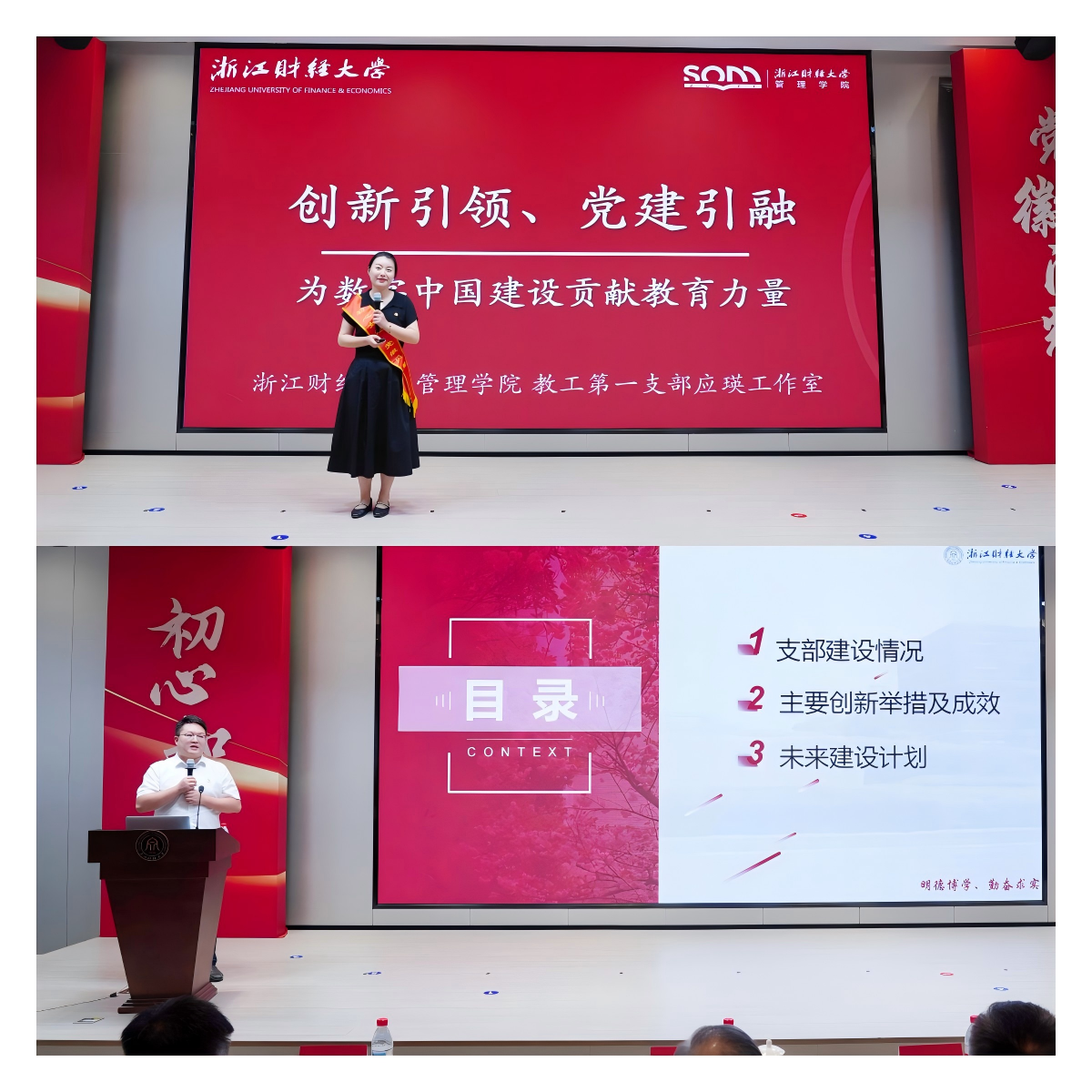 中国p站 第三党支部等4个“支部建设创新奖”获奖支部代表,以及应瑛、丁松等两位“双带头人”教师党支部书记代表分别作了成果展示。
