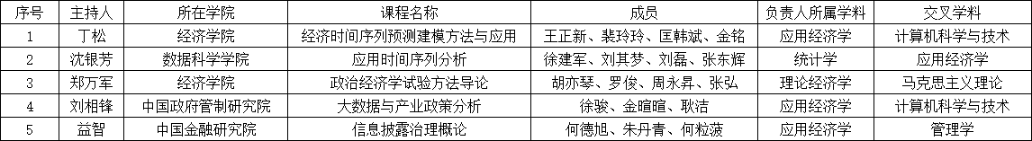 为了落实立德树人的根本任务,推动交叉学科人才培养的教学建设,促进跨学科教育内容的深度融合,提高交叉学科研究生教育教学质量,经本人申请、部门推荐、校外专家评审推荐,确定“经济时间序列预测建模方法与应用”等5门课程为研究生学科交叉课程建设立项。现将立项结果予以公布(具体名单见附件)。