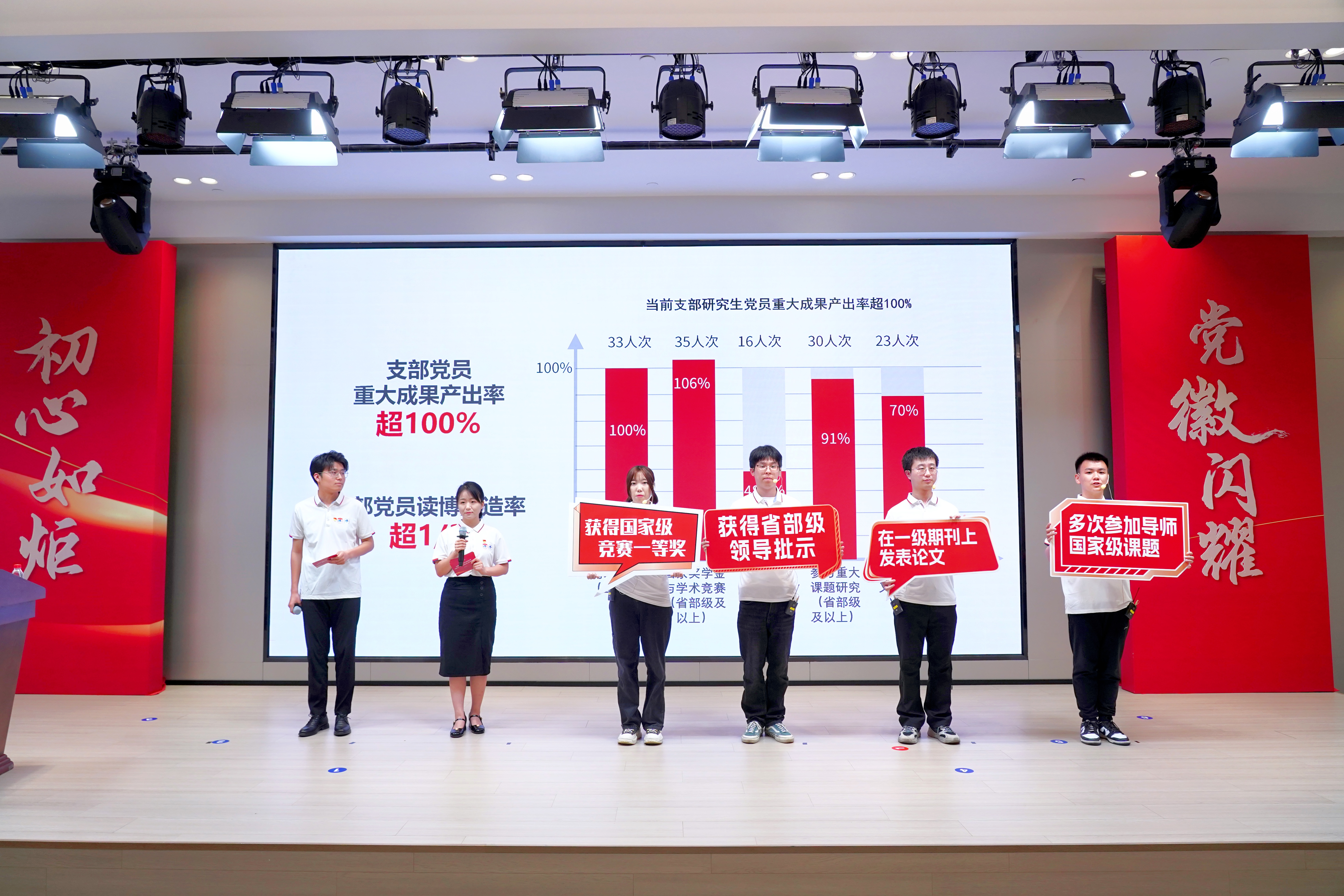 中国p站 第三党支部等4个“支部建设创新奖”获奖支部代表,以及应瑛、丁松等两位“双带头人”教师党支部书记代表分别作了成果展示。